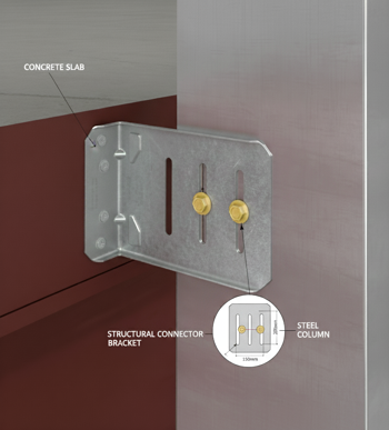Typical installation anchors the clip to concrete or steel (using anchors, screws, or welds) and to the stud web/flange with manufacturer-specified self-drilling screws. Clips are sized for the required standoff (keeping the stud line outboard of the structure) and for allowable loads; they’re placed at the top-of-wall and at intermediate supports per the engineer’s details.