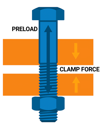 Bolt preload is the tension, or stretch, intentionally created in a bolt when it's tightened. This tension generates a powerful clamping force between the bolt's head (or nut) and the materials being joined. By stretching the bolt like a spring, the tightening process creates a tensile force within the bolt and an opposing compressive force on the joint, effectively holding the parts together securely. This "built-in" clamping force is crucial for ensuring a joint remains stable and reliable, resisting external stresses like vibration, shear forces, and thermal expansion.