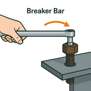 A breaker bar is a long, non-ratcheting hand tool used to apply high torque for loosening very tight or rusted fasteners, such as bolts and nuts. It looks similar to a socket wrench but without the ratcheting mechanism. Instead, it has a solid handle, usually made of steel, and a drive end that accepts interchangeable sockets.