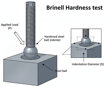Brinell Hardness is a method of measuring how resistant a material is to indentation, giving an indication of its hardness. In the Brinell hardness test (BHN), a hard steel or tungsten carbide ball is pressed into the surface of a material under a specific load. The diameter of the indentation left behind is measured, and the Brinell Hardness Number (BHN) is calculated by dividing the load by the surface area of the indentation.