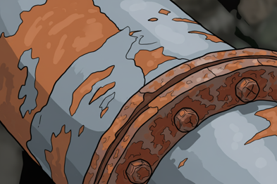 Crevice corrosion is a localized form of corrosion that occurs in narrow, confined spaces where oxygen and other environmental conditions become trapped, creating a chemical imbalance. These spaces—called crevices—can exist between two metal surfaces or between a metal and a nonmetal, such as under washers, gaskets, fastener heads, lap joints, or even beneath dirt and deposits.