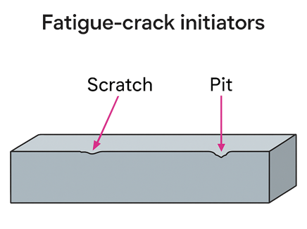 Controlling fatigue-crack initiators is a major goal in engineering and design. Processes like polishing, shot peening, surface coatings, and proper fillet radii are used to reduce stress concentrations. High-quality material selection, careful manufacturing, and preventive maintenance are equally critical in minimizing the sites where fatigue cracks can nucleate and threaten the reliability of a component.