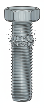 In fasteners, galling is most common with stainless steel, aluminum, and titanium bolts and nuts, because these metals have a tendency to form adhesive bonds when rubbed together. As torque is applied, microscopic high points (asperities) on the threads weld together under pressure. When the fastener continues to turn, these welded spots tear, pulling material from one surface to the other. This not only damages the fastener but can also cause it to seize, making removal extremely difficult.