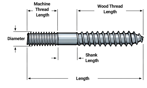 The wood-threaded end (often coarse and tapered) is designed to be screwed directly into wood, composite material, or a wooden frame. It typically has a pointed tip and deep threads for a secure grip. The machine-threaded end (fine and uniform) is meant to accept a nut, washer, or tapped metal fitting, allowing for removable or adjustable connections.