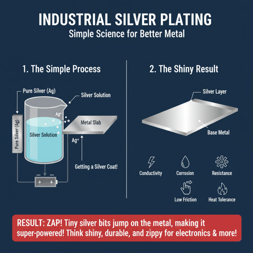Industrial silver plating is a functional metal finishing process in which a controlled layer of pure silver is deposited onto another metal—such as steel, stainless steel, copper alloys, aluminum, or nickel alloys—to improve conductivity, corrosion resistance, friction behavior, and high-temperature performance. Unlike decorative silver plating, industrial silver plating is engineered for demanding environments and critical components. It is typically applied through electroplating, in which electrical current deposits silver ions from a silver salt solution onto the surface of a part. Many components first receive an underplate—usually nickel or copper—to increase adhesion, prevent diffusion, and ensure long-term stability. Silver thickness is carefully controlled, generally ranging from 5 to 50 microns depending on the electrical, mechanical, or thermal requirements of the application.