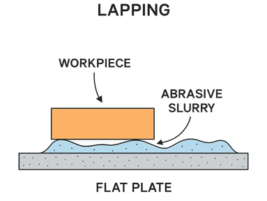 Lapping is a precision finishing process used in manufacturing to achieve extremely flat, smooth, and accurate surfaces on a material. It involves rubbing two surfaces together with an abrasive slurry or compound between them. The abrasive particles—suspended in a liquid or paste—gradually cut away microscopic amounts of material, removing high spots and irregularities to create a fine, uniform finish.
