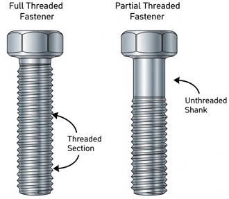 A partial thread fastener is one where the threads only cover a portion of the shank, leaving a smooth, unthreaded section (called the grip length) between the head and the threaded portion. This is the opposite of a full thread fastener, where the threads run the entire length.