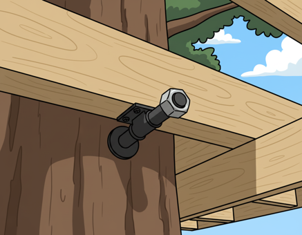 The defining feature of a treehouse lag bolt is its shear-support design. Instead of simply pulling two materials together like a normal lag screw, TABs support large vertical and lateral loads by acting as a structural cantilever. The load rests on a large shoulder or perch rather than relying only on thread strength. This allows the treehouse platform to sit on a bracket or pipe bracket mounted to the bolt, distributing weight without crushing bark or restricting growth.