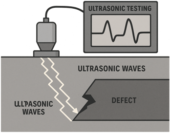 Ultrasonic Testing (UT) is a non-destructive testing (NDT) method that relies on high-frequency sound waves—typically between 0.5 and 25 MHz—to evaluate materials without causing damage. A transducer generates ultrasonic waves that are directed into the test material, and whenever these waves encounter a boundary such as a crack, void, inclusion, or even the back wall of the material, part of the energy is reflected back. The reflected signals are captured by the same or a separate transducer and displayed on a screen, allowing technicians to determine the presence, size, and depth of internal flaws. This ability to “see” inside a material makes UT one of the most sensitive and widely used inspection methods for detecting cracks, porosity, inclusions, and other discontinuities that could compromise performance.