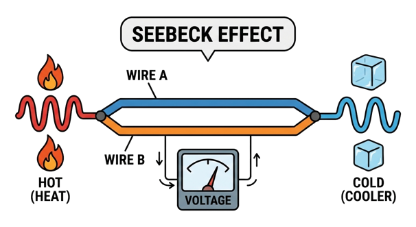 The Seebeck effect is the phenomenon where a voltage is generated when there’s a temperature difference along a conductor—or more commonly, across a circuit made from two dissimilar conductors. In plain shop language: heat on one end and cooler on the other can create a measurable electrical “push.”